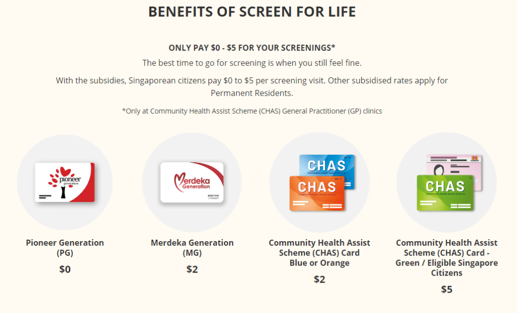 You are also entitled to recommended age-appropriate health screening under the Screen for Life (SFL) programme.